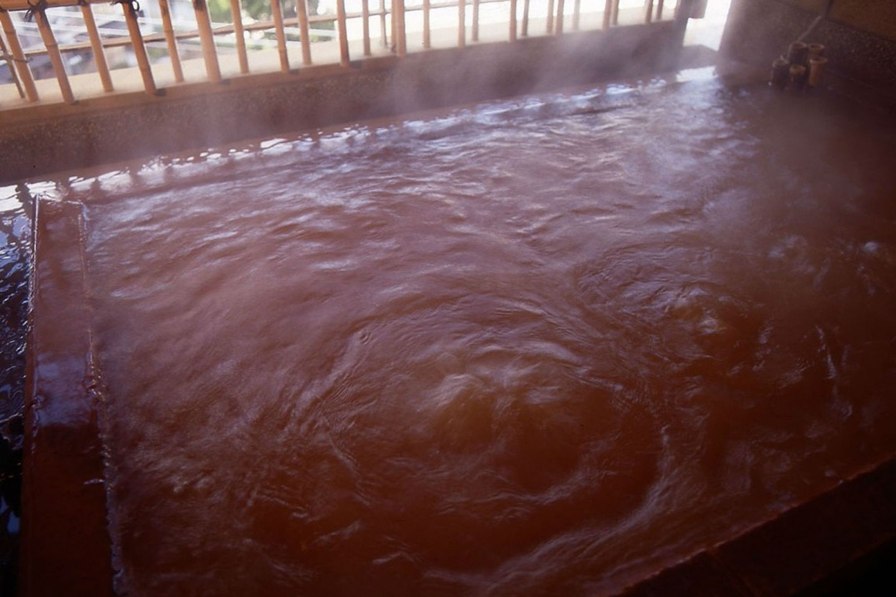 眺望の良い大浴場です。有馬の風景を眺めながらお寛ぎ下さい。露天風呂は小さい湯船ですが、三大古泉『金泉』を源泉掛け流しでご用意しております。