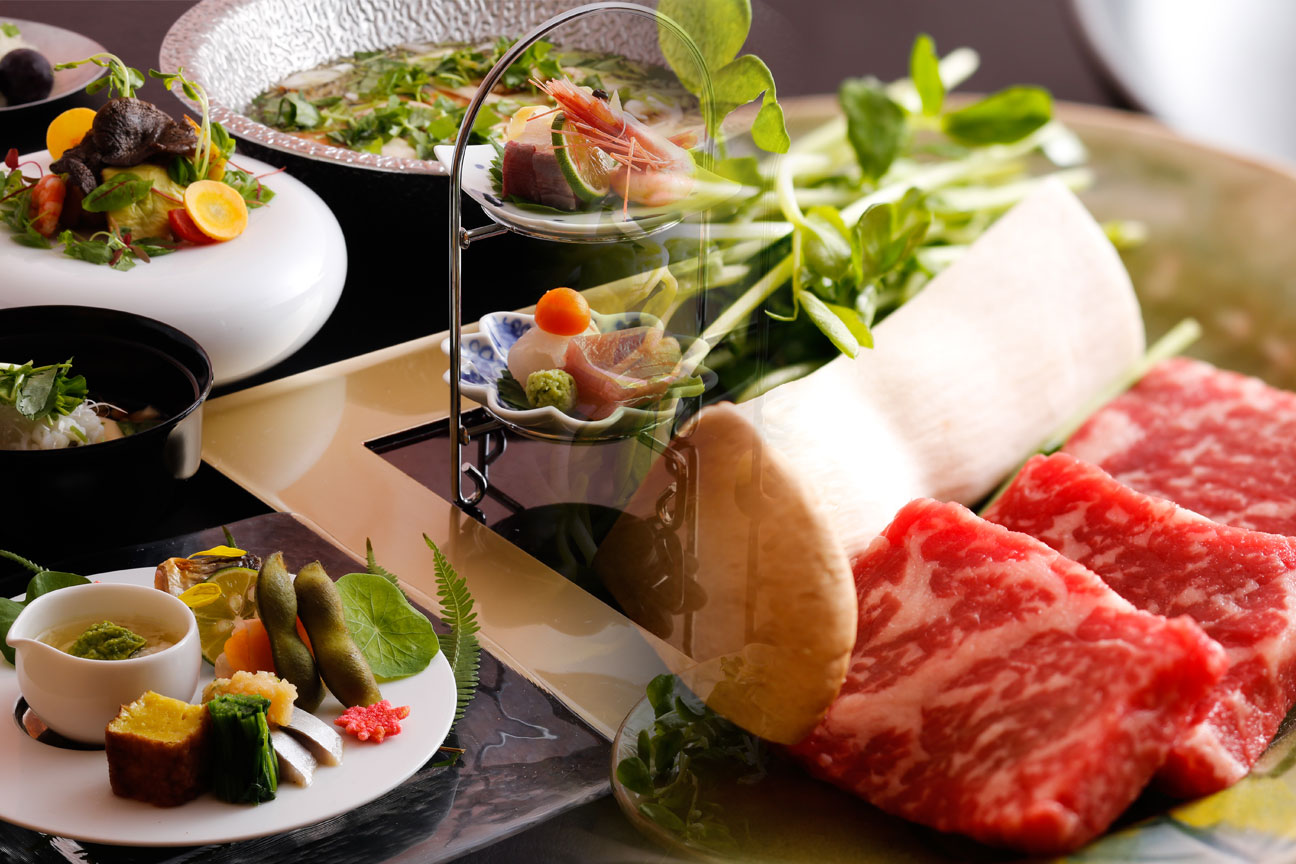 旬の食材をふんだんに取り入れ、一品一品素材を厳選し、味覚はもちろん視覚にもこだわったお料理を心がけております。お客様のお食事時間に合わせて一品ずつ調理し、会席料理の基本、おもてなしの心をお料理で表現しています。有馬の旅が、皆様の心に残るものでありますように。