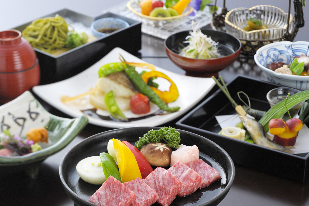 地場産の食材にもこだわったコース料理は有馬の美しい四季の移り変わりと併せてお愉しみ頂けます。