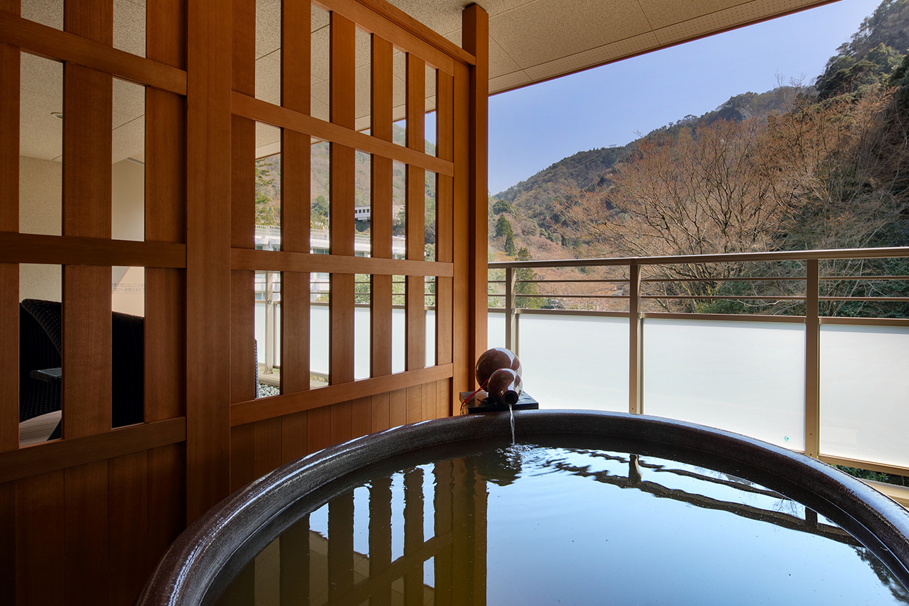 有馬温泉の一番奥に構えた当館の客室からは、有馬・六甲の山並み、四季の彩と一体になるくつろぎの空間をご用意しております。 「料理」「温泉」「空間」で、お客様に最高の贅沢をお届けします。